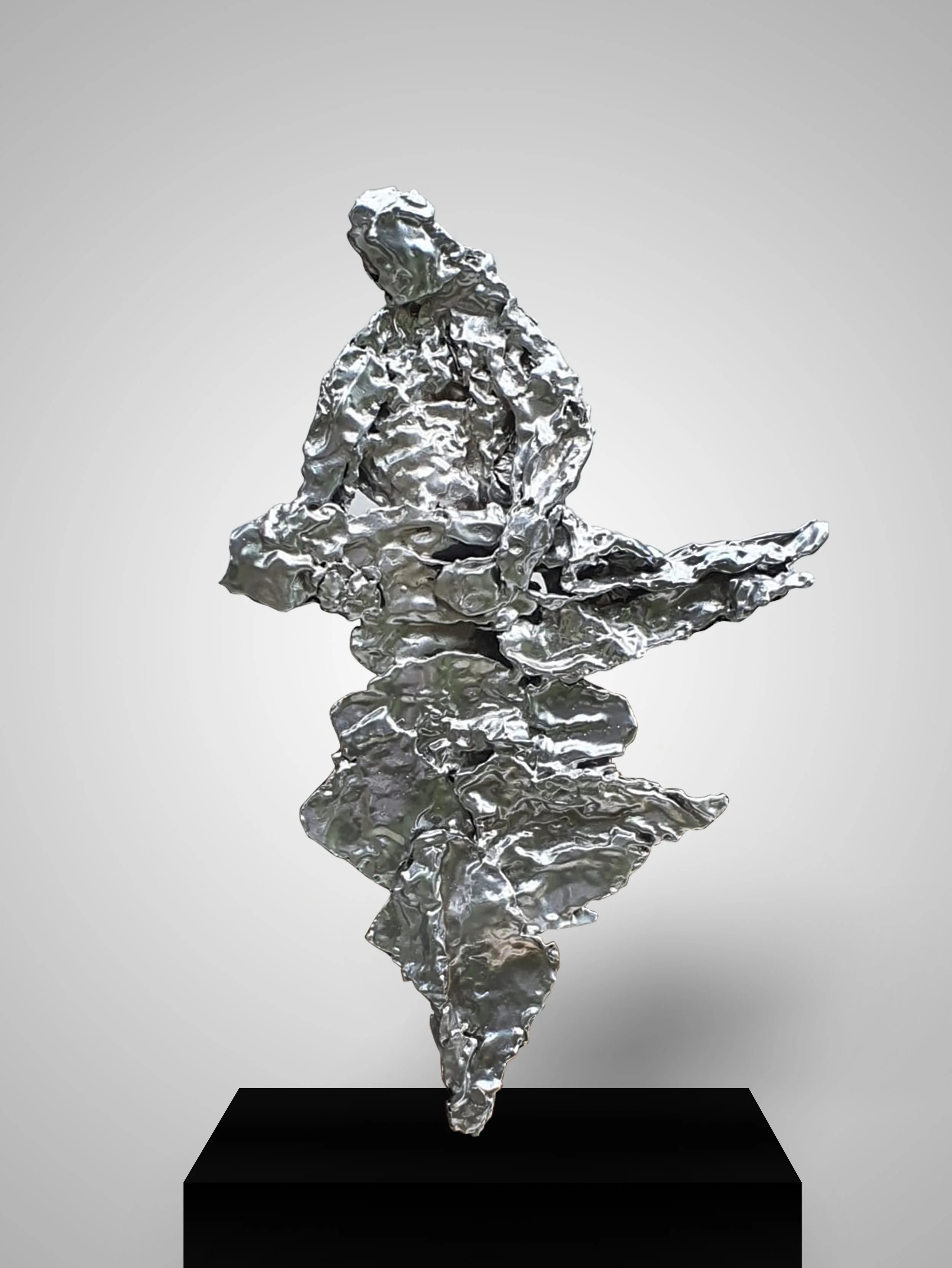 “Woman Carrying a Corpse” - aluminium foil lapis resin dan silver coating, 22 x 0,3 x 35 cm, (2020)